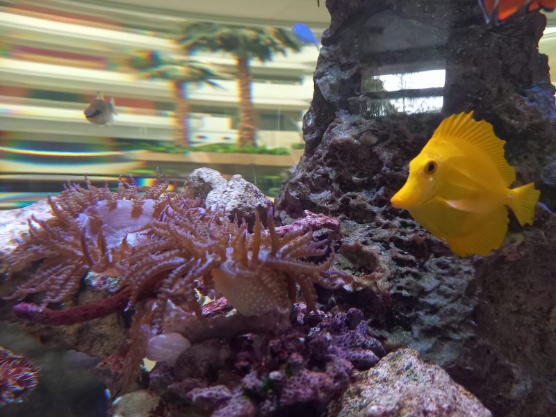 ホテルロビーの水槽には、カラフルなお魚がたくさん泳いでおり、テラスではシーサー達が自転車に乗ったりポーズをとったりと、とてもかわいらしく癒やされました(*^^*)