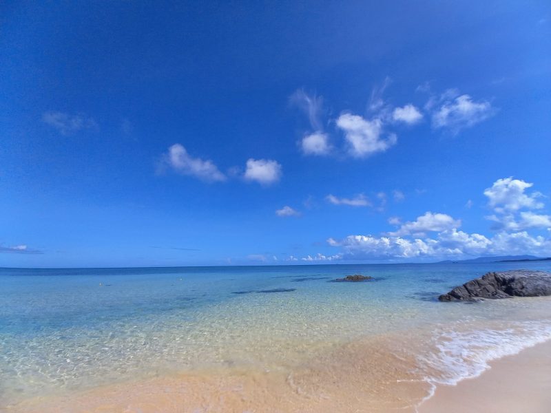 波打ち際まで歩いて来てみると、あまりの真っ白な砂浜にビックリ! サングラスがないと眩しい程キラキラしていました。