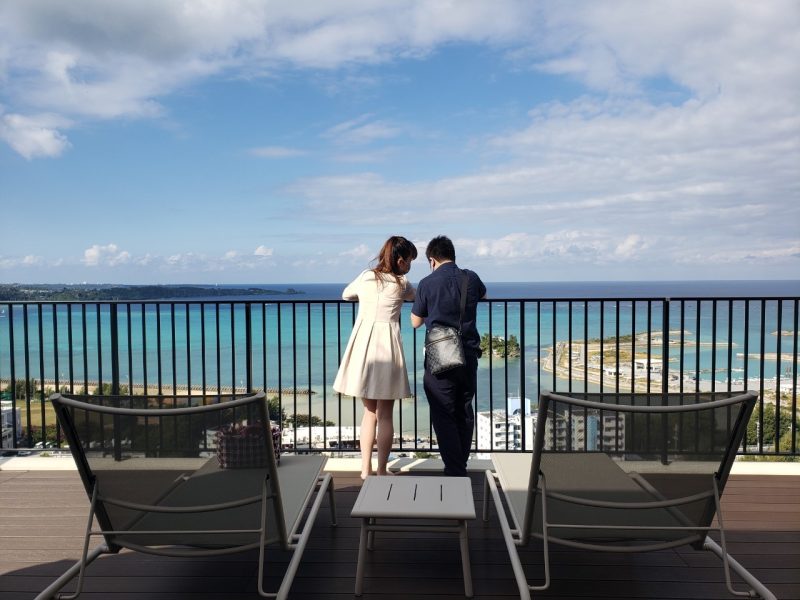 まずは、2021年3月恩納村仲泊の高台にグランドオープンの「HIYORIオーシャンリゾート沖縄」さんの12階のスイートルームからの絶景です!歓声が上がっておりました😆