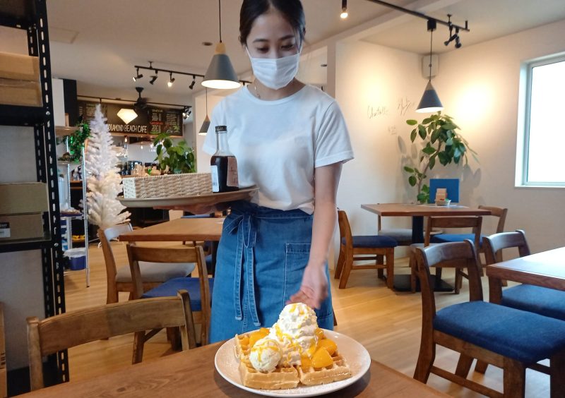 始まりました♡初日の今日は、「ダイヤモンドビーチカフェ」さんの恩納村産マンゴーのサクサクワッフルを食べに!!