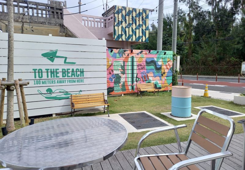 お車は、隣の「琉球焼肉NAKAMA」の駐車場を利用します🚗店内に入る前に、あまりの可愛さに思わずテラスをのぞいてしまいました😊