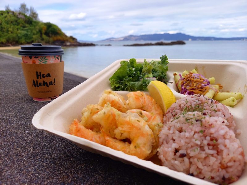 ガーリックシュリンプやロコモコ・ポキ、アサイーボウルなどのフードメニューの他に、ハワイのコナコーヒー・サンゴ熱でじっくり焼き上げた35COFFEE、トロピカルジュースなどをご提供☕