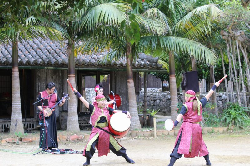昔ながらの古民家の街並みやエイサーショーが楽しめる♪琉球村デート