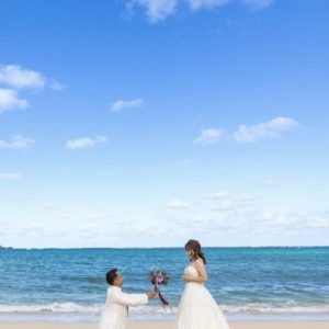 ラヴィ・ファクトリー沖縄(小さな結婚式 沖縄イル・ド・レ チャペル)様にご当選の K.Uさんご夫婦