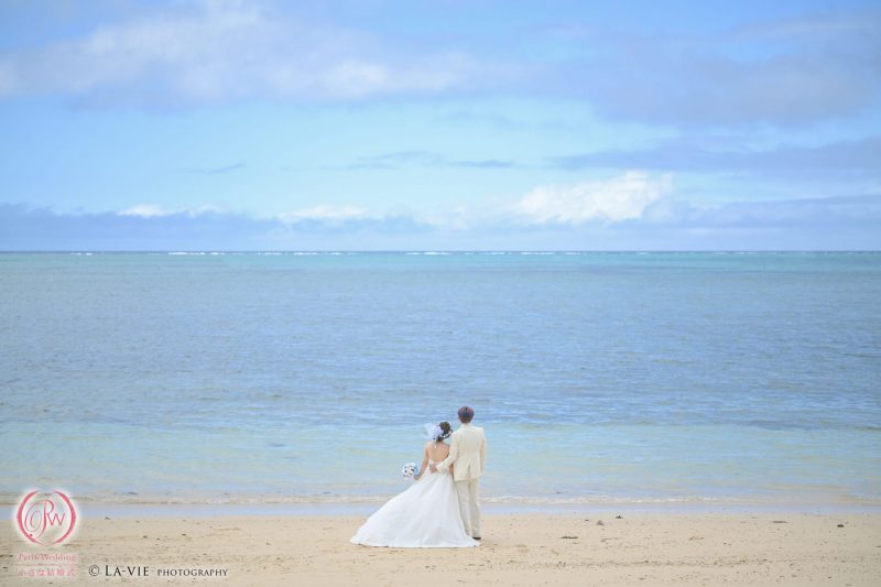 恩納村で過ごす時間は、とてもゆったりしています。白い砂浜を踏む音、波打ち際の音視線を上げれば遥かに広がる空、非日常の時間の中で挙げるウェディングは他では味わえないものがあります。