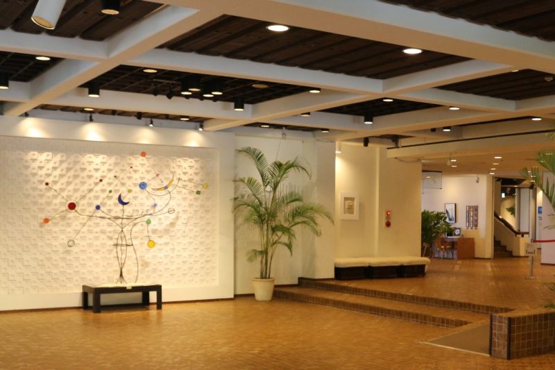 さっそくオシャレなオブジェを発見!ホテルムーンビーチでは、館内外のいろいろな場所にアートに出会うサプライズが仕掛けられています。