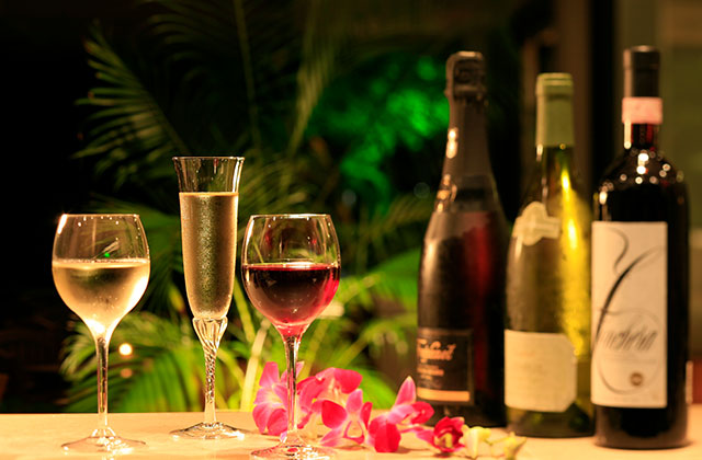 ビール・ワイン・ウィスキー・泡盛を、南国の風を感じながらお楽しみいただけます。