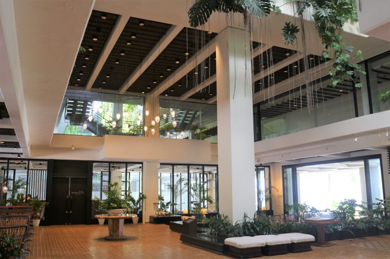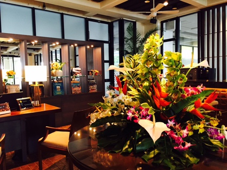 ロビーでは、ブーゲンビリアや観葉植物がお出迎えをしてくれ、心地良い風が吹き抜け非日常のリゾートステイの始まりです。