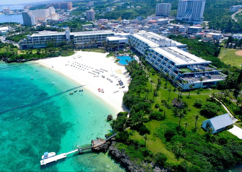 エントランスに到着すると、正面にエメラルドグリーンの海・ヤシの木も見え、地元民の私ですが旅行に来た気分になりました!