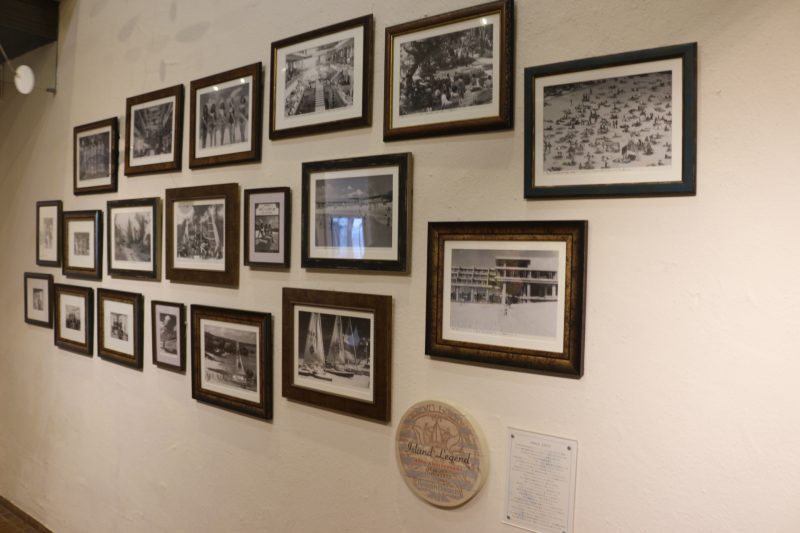 1957年に月乃浜海水浴場としてオープンし、地元の皆さまに愛され憩いの場となっていた頃のお写真や、1975年に「ホテルムーンビーチ」が誕生した当時の歴史を感じるお写真が飾られており、アグネス・ラムさんや、加山雄三さんのお写真もありました(ノε`*)ノ