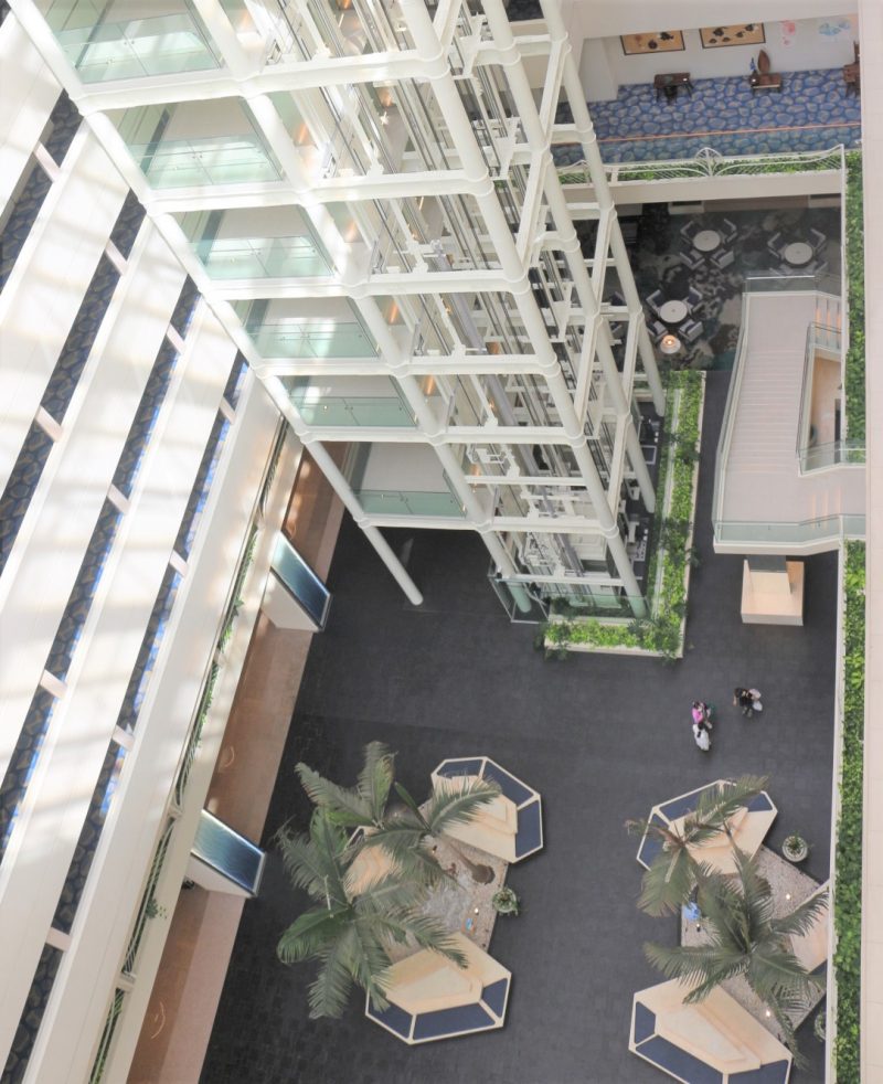 絨毯の模様や濃い青から水色へと変化するエレベーターホールの壁面は、楽しみの1つです(‘∇^)