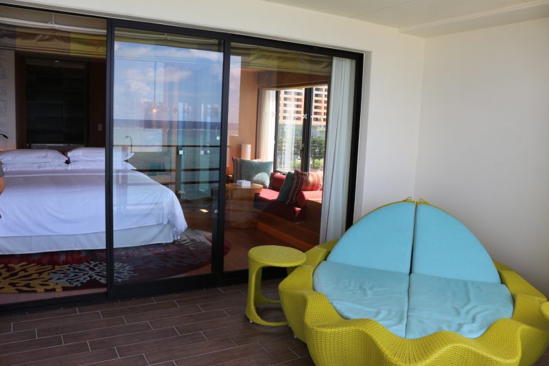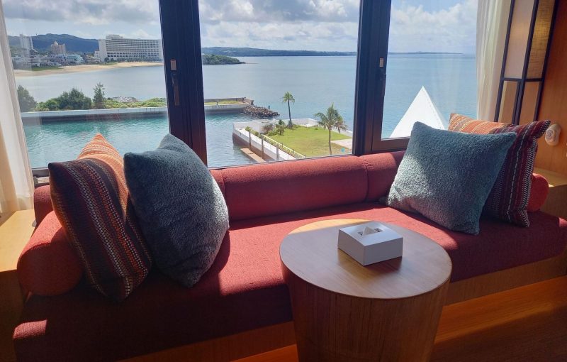 扉を開けると目の前には海、そしてアジアンな家具にミンサーやシーサーなど、沖縄らしさがつまったオシャレなお部屋!