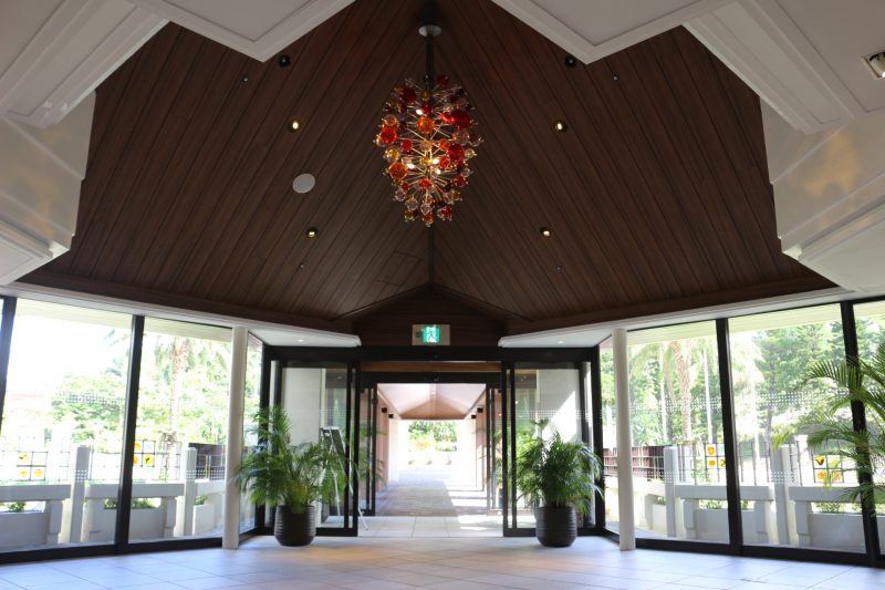 ロビーに入ると、琉球ガラスのオシャレな照明を見つけました。