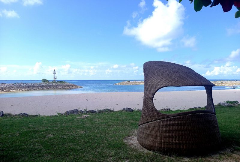 ホテルの敷地内にはオシャレなイスなどがあり、お散歩をしながら腰掛けて、ゆっくりとリゾートを満喫できます。