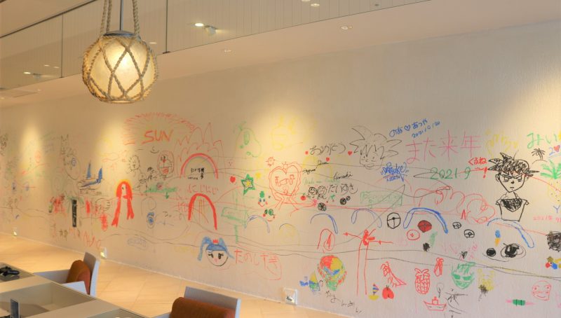 旅の思い出を「ウォール・オブ・エクスプレッション」に描いて記念撮影をしたり、ホテルで1日中満喫する事ができます。