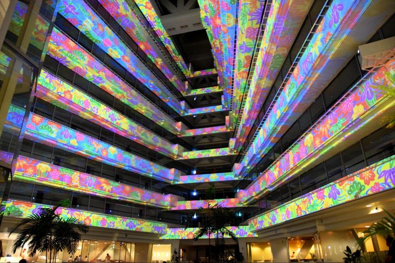 毎晩2回、迫力満点のプロジェクションマッピングと音楽に合わせて踊る噴水のコラボレーション「サンマリーナ音と光のファンタジー」もロビーで開催されており、2回とも内容が違うそうなので、どちらも見たいですね♪