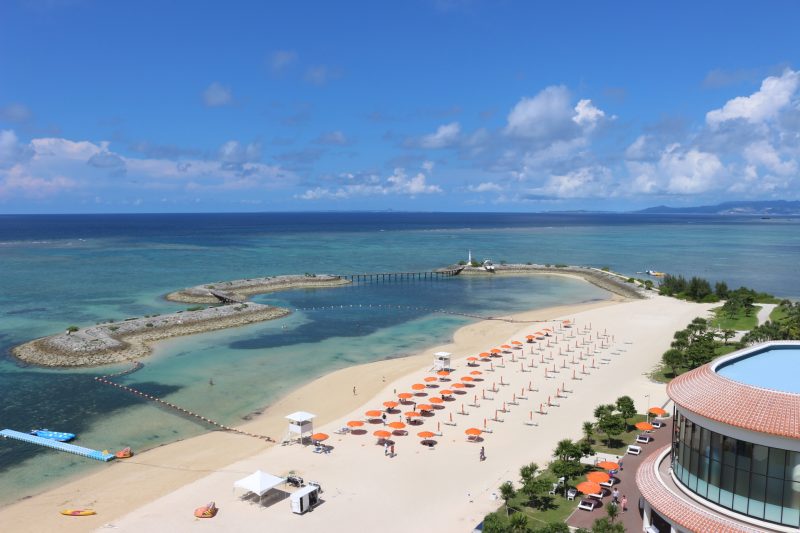 シェラトン沖縄サンマリーナリゾートは、目の前に全長400mのサンマリーナビーチが広がるオーシャンフロントのリゾートホテルです。
