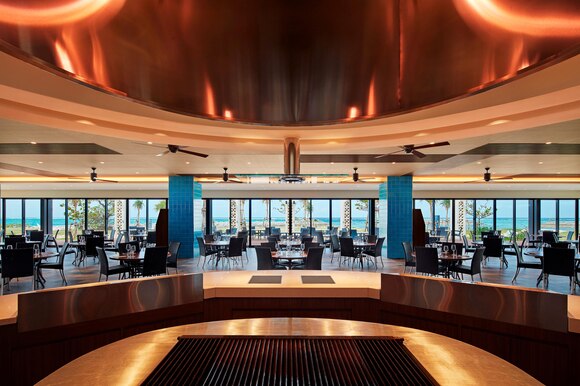 オールデイダイニングレストランの「ダイニングルーム センス」は、恩納村漁港直送の魚介類をはじめ、地元ならではの新鮮食材を贅沢に使用した洋食や沖縄料理を中心としたビーチサイドレストランです。