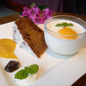 キャロットケーキの情熱ソース添えマンゴーミルクシェーク