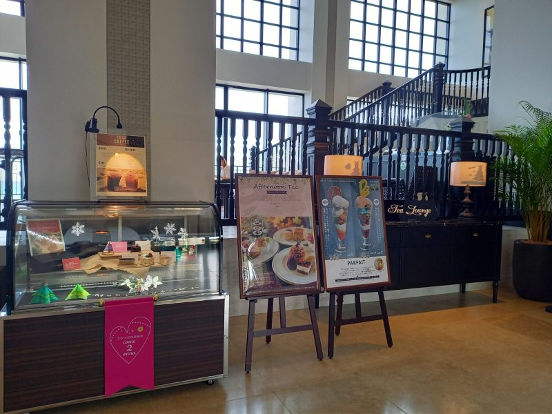 今回、恩納村産紅芋のモンブランを提供しているのは、高い天井そして大きな窓ガラスからタイガービーチを望む事ができる、開放感のある「ティーラウンジ」です😊