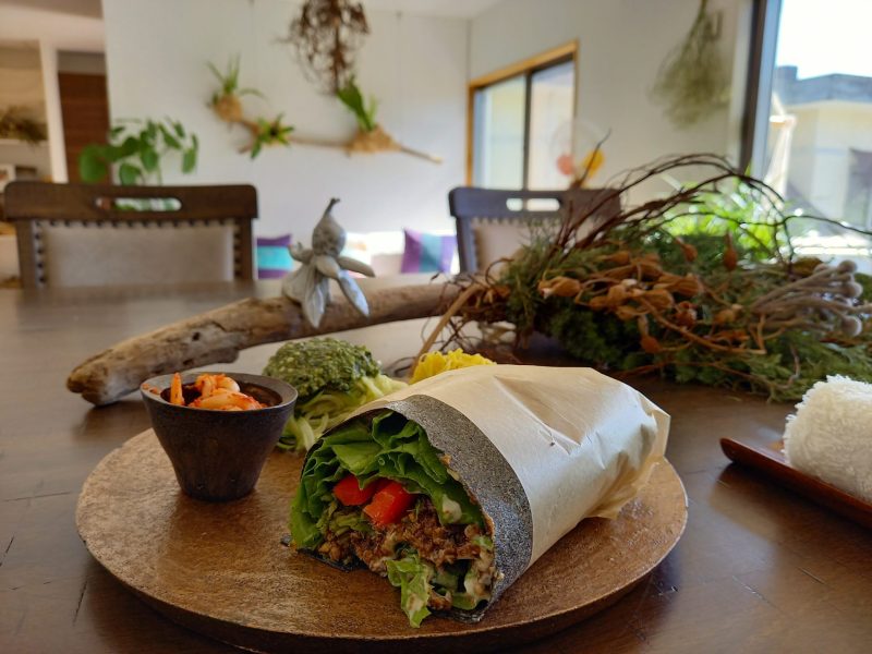 女性に嬉しい究極のデトックスフード♡ブリトーの皮は、宮古島の麻炭を練り込んだお野菜のペーストを13時間乾燥させて作ったそうです。
