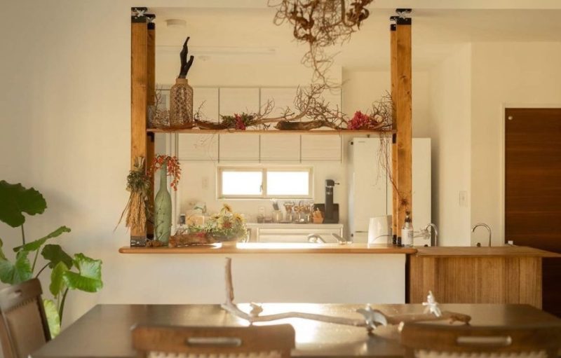 店内は沖縄の植物をベースにデザインされており、クバの幹やカニステルの葉のランプシェード、観葉植物であたたかみを感じる空間でした🌿
