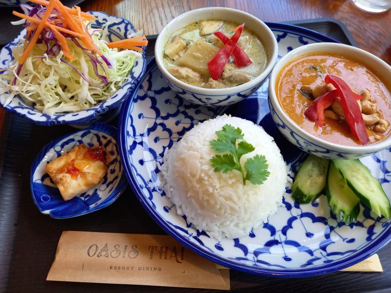 トムヤムクンと決めていたのですが、メニューを見てグリーンカレーが食べたくなり・・・悩んだ結果、グリーンカレーとビーガンレッドカレーの食べ比べセットにしました😆