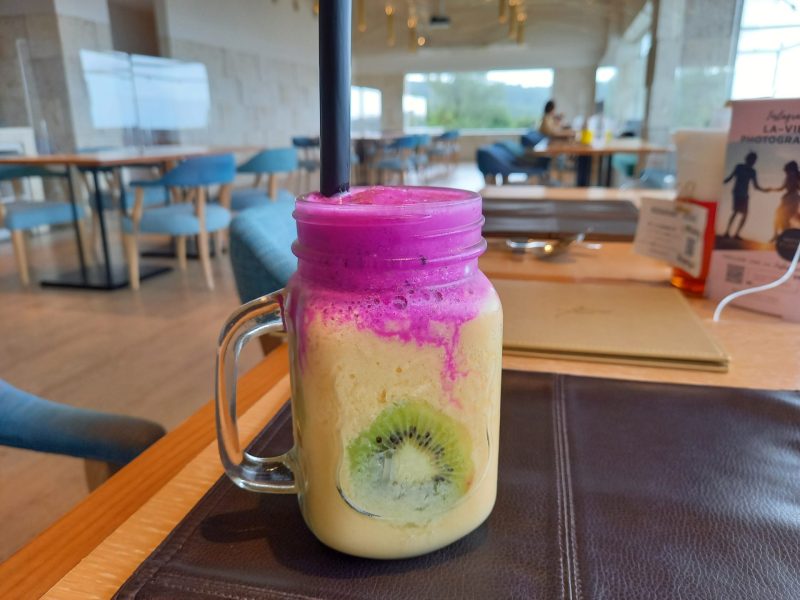 今回は、スイーツ祭りにエントリーのマンゴーとドラゴンフルーツをふんだんに使用したスムージーを注文です🍹