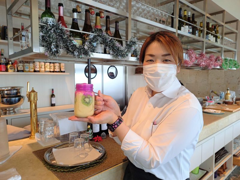 ミキサーの音が聴こえワクワクしていると、笑顔いっぱいの森本さんがスムージーを運んできてくれました☺