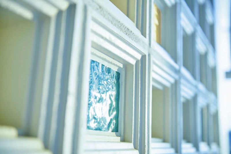 ご参列者様から見て正面には海・両サイドには、こちらも琉球ガラスが使用された琉球織物の紋様を描いたガラス細工があり、とても優しいお色で外から差し込む光がお二人を温かく包み込みます。沖縄らしさ満載の撮影スポットとなっております。