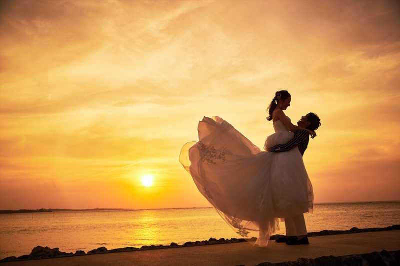 こちらの桟橋では、西海岸の夕陽を背景にサンセットフォトもあり、ゴールドとオレンジの夕日に包まれる幻想的なロケーションの中、ロマンチックなお写真が撮影出来ます。