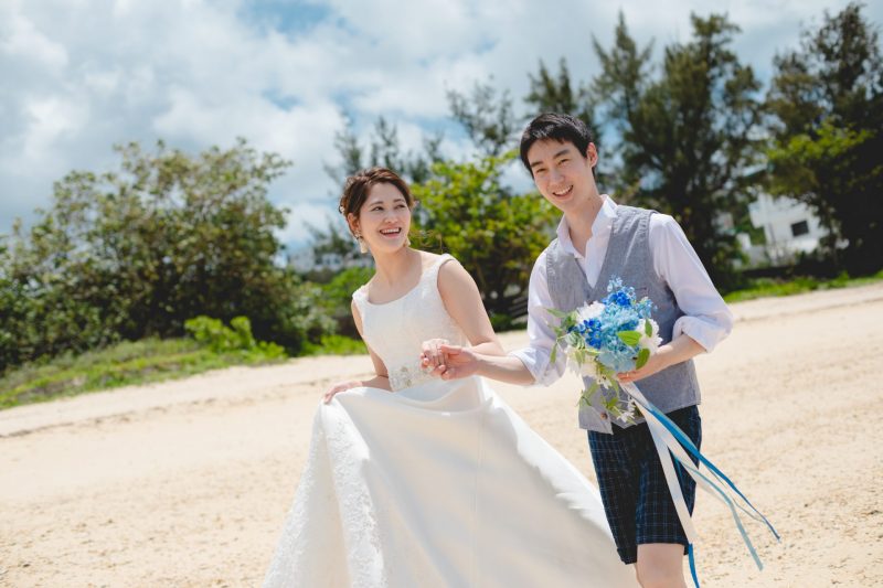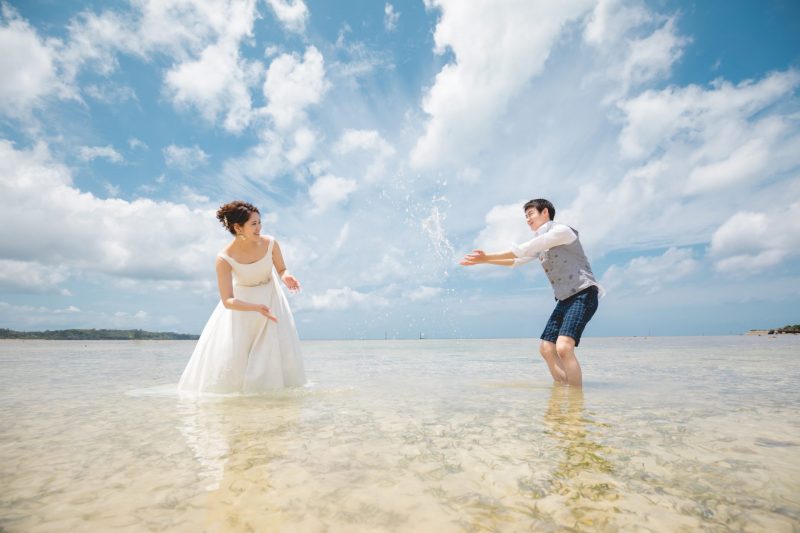 二人の様子 普段はクールな感じのお二人ですが、綺麗な海を見て水を掛け合ったり、貝殻を拾ったり、自然を満喫されていました。