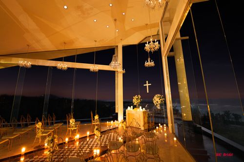 サンセットの夕陽を見下ろしながらのお時間や、暗くなってからのナイトウェディングも行っており、昼間とはまた違う景色での挙式プランもございます。