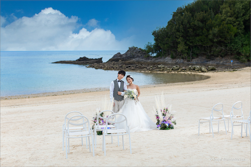 他にも、エメラルドグリーンの海を目の前に行う、ビーチ挙式プランもございますよ v(´∀`*v)