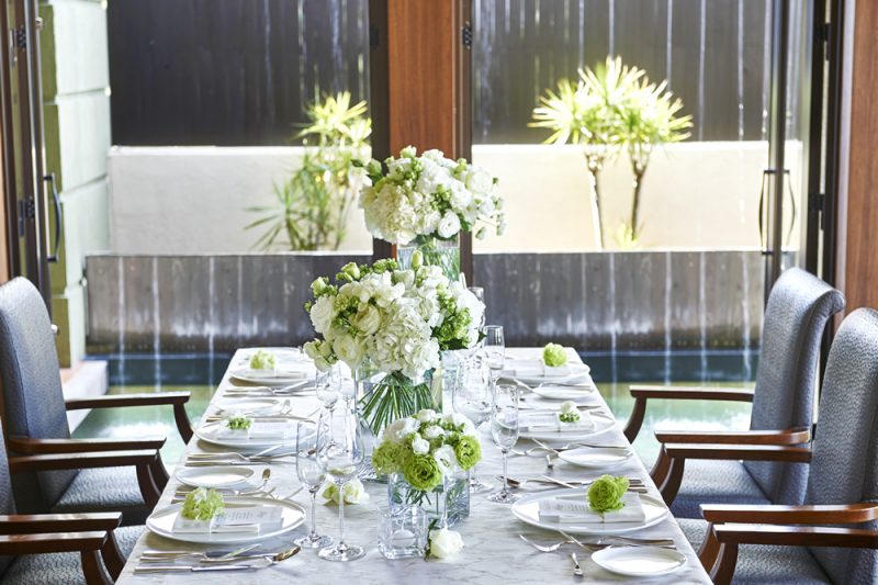 気品あふれるバンケットとプールサイドのテラス席【PRIVATE dINING-Sea’s-】様々な表情をみせる空間で、華やかなパーティを演出 ♪