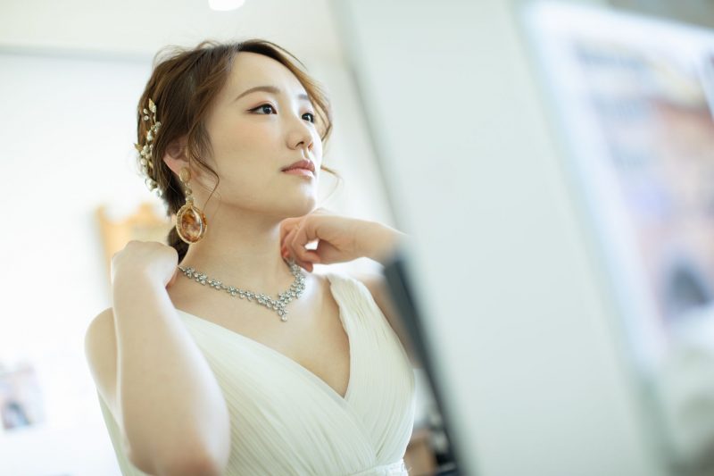 普段ではしないようなヘアメイクを楽しんでもらい、最後に鏡を見せる時の反応を私自身は楽しみにして、ご新婦様に『わぁ〜!かわいい〜!』を言って頂けるような、感動を与えられるように努めています。
