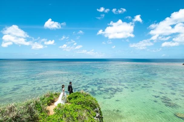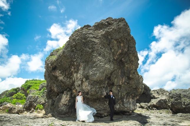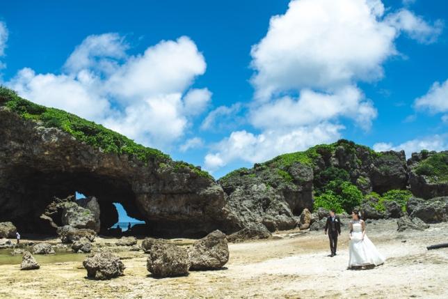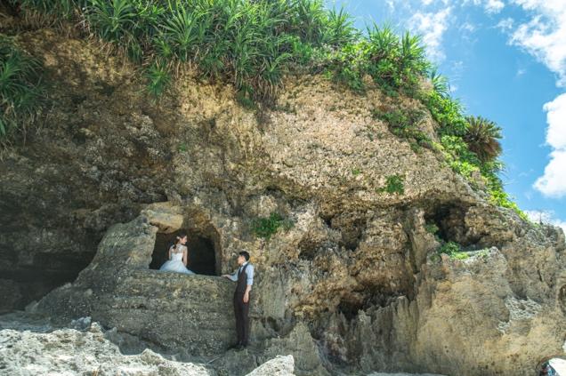 こだわりポイント:ご新郎様が沖縄大好きで、海が綺麗なロケ地を希望されてましたので、自然溢れるアポガマにて撮影をしました
