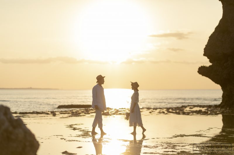 沖縄本島西海岸リゾート地、恩納村でビーチ撮影プランに夕日撮影がついたプラン
