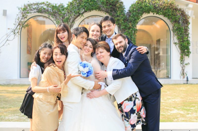 フラワーシャワーで退場されましたら、新郎新婦は一度控え室にてお直しの後、ガーデンでゲストと笑顔溢れる集合写真を撮ります。楽しみですね ♪