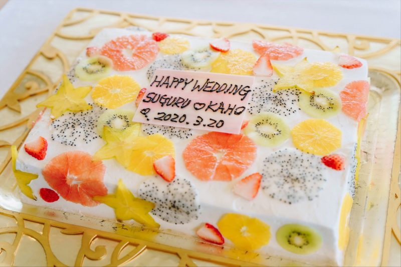 ウェディングケーキ・デザートビュッフェも、人数に応じて対応しているので、「ドラゴンフルーツ・マンゴー・パッションフルーツ」など、季節の南国フルーツを使用したオリジナルケーキをご用意!