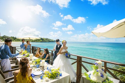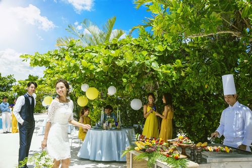 イルカが泳ぐラグーン横のビーチサイドと、涼し気なプールサイドの2会場ありご利用人数によってお選び頂けますよ。