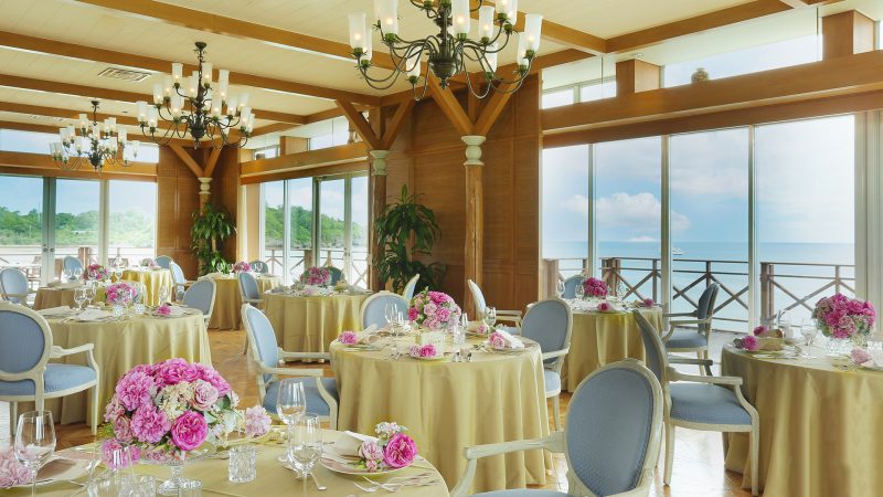 東シナ海を一望するエレガントなレストランで、優雅なひとときをお楽しみ。