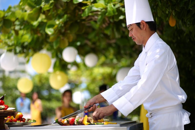 17時スタートのサンセットのお時間がオススメの、空と海を感じながら開放感あふれるBBQスタイル。沖縄の海の幸やシェフ自慢の料理が振る舞われます。