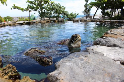 ロビーで、カラフルなオウムが「おはよう~」とお出迎えしてくれて、それだけで嬉しくなったのに、イルカはもちろん亀やエイ、魚もいましたよ。こんなに近くで見た事ない~