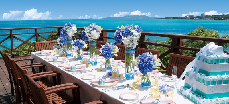ホール席は70名・テラス席は36名様までご利用可能で、洋食のコース料理となります。恩納村産の可愛いお野菜達も使用しておりますよ。