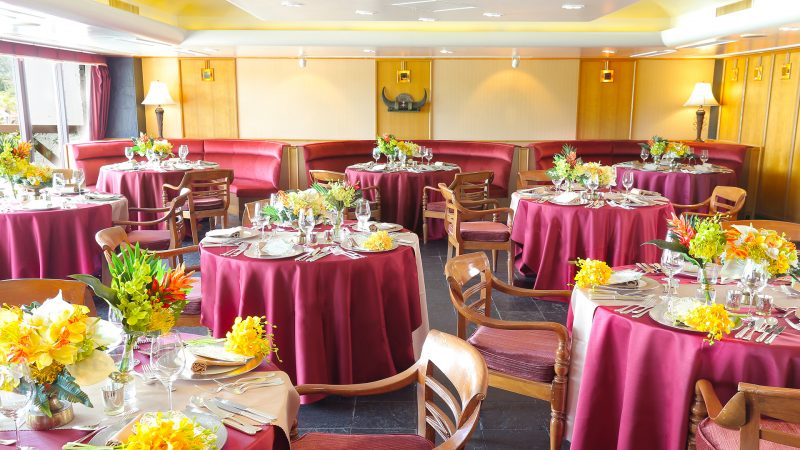 船内をイメージしたプールサイド2階の、ムード漂うカリフォルニア料理のレストラン。