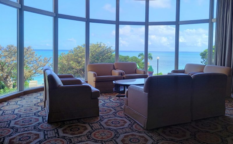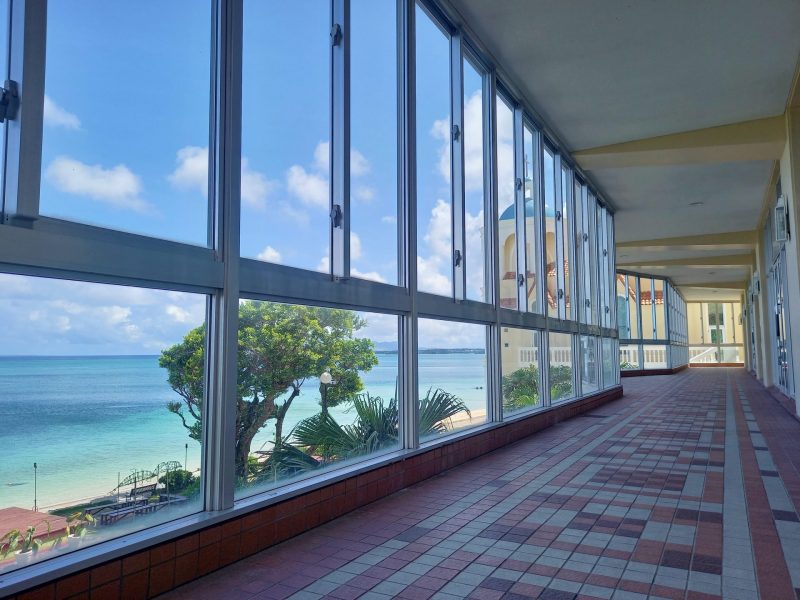 お時間になりましたら大きなガラスの向こうの海を見ながら、チャペルへ ♪