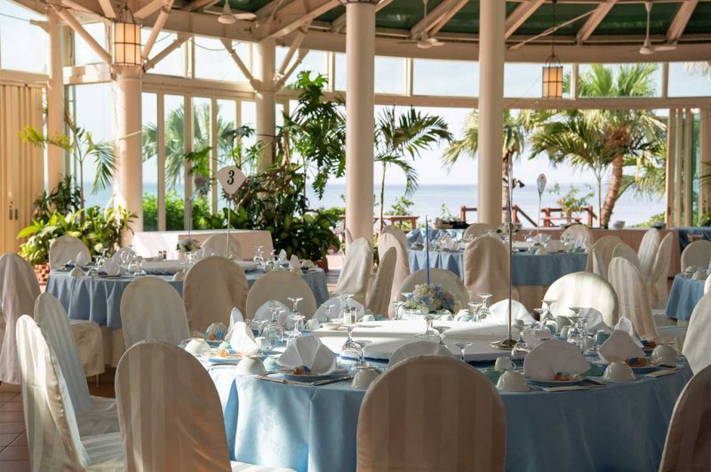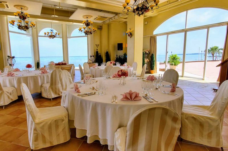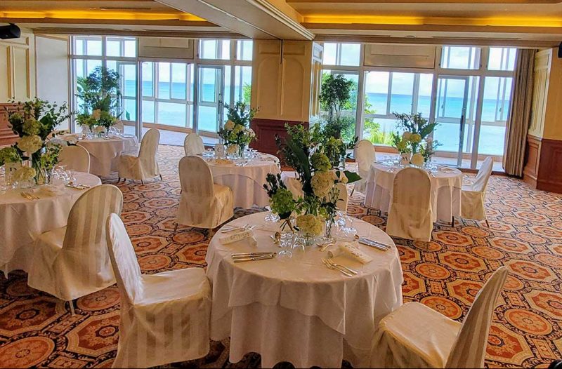 青い空と海で叶うビーチサイドウェディング【オーシャンビュードーム】は、収容人数180名様となっており、海を眺めながら開放感溢れるパーティーをお楽しみ頂けます。