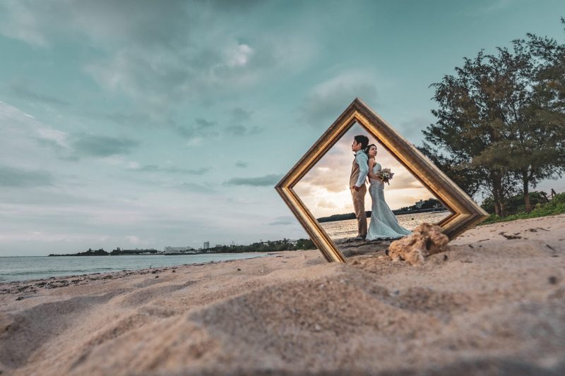 その中でも人気なのが鏡を使ったお写真!!反射で映る2人と背景が違うところがオシャレなんです♪